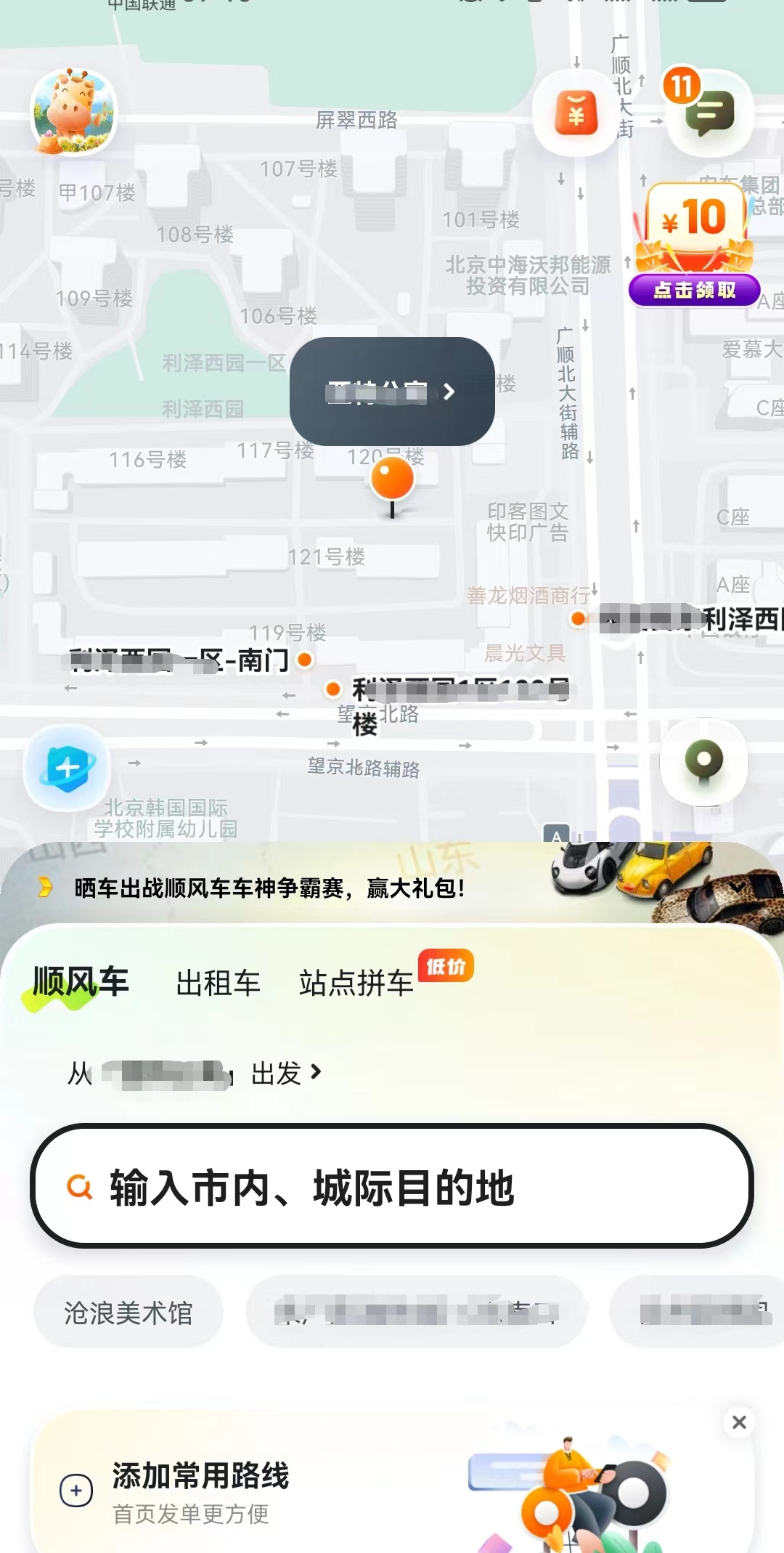 注:打开App,平台会根据用户当前所在实时位置,自动为用户推荐周围合适点上车点。