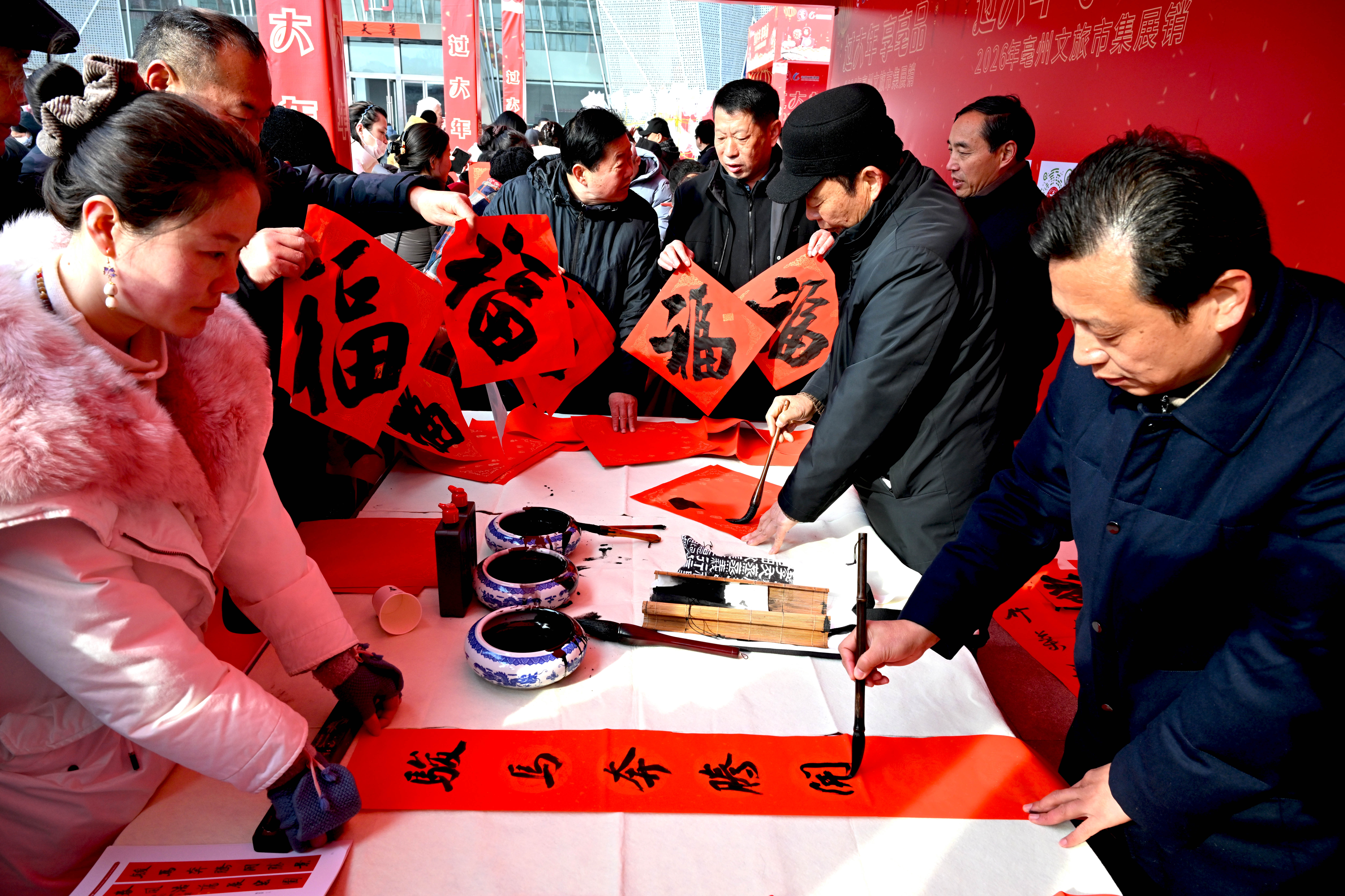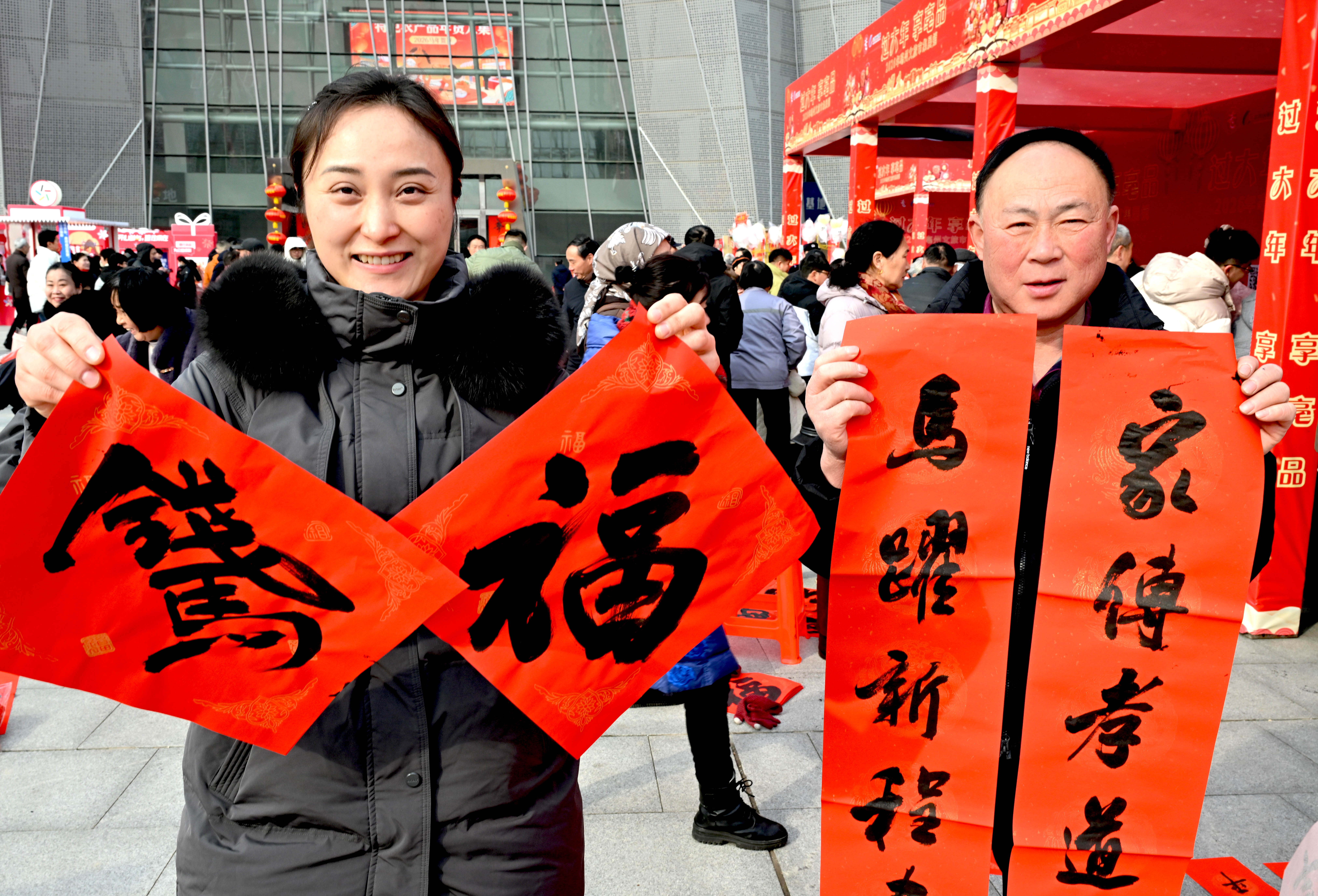 招聘专区附近,市政协书画院组织20余名优秀书法家现场挥毫泼墨,免费为市民写春联、送“福”字。笔走龙蛇间,一幅幅笔力遒劲、饱含新春祝福的春联,一个个寓意吉祥、苍劲有力的“福”字,传递着浓浓的年味与温情,将传统文化的魅力与新春的美好期许送到群众身边。
